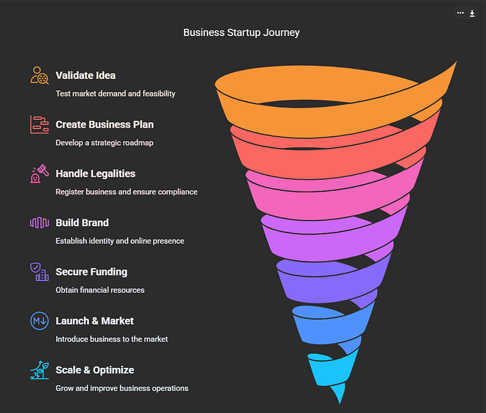 Starting a business can be both exciting and overwhelming. But with the right strategy, you can turn your idea into a thriving venture! Here’s a simple yet powerful roadmap to get you started:
